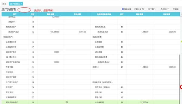 快速调整报表: 提供多种不平衡提示及解决方法,从期初资产不匹配到损益科目期初余额问题,一键解决。