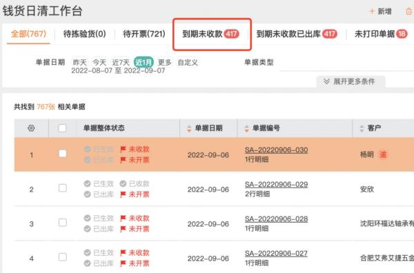 【销售工作台】时刻关注订单进度:是否打单、是否发货、是否开票、是否收款?