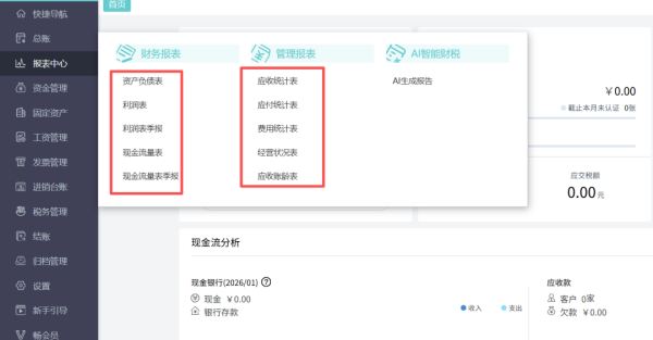 4、财务报表申报 资产负债表→货币资金填0.01 利润表→全部填0