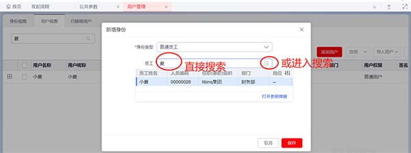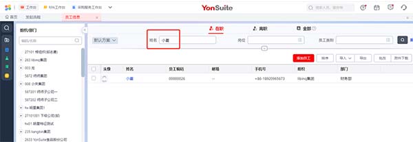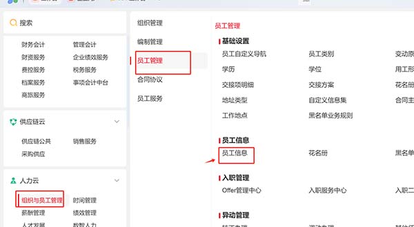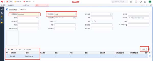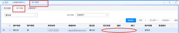 2、已启用人力云:人力云 > 组织与员工管理 > 员工管理 > 员工信息 > 员工信息 中新增员工后直接到用户管理中新增用户,关联员工身份;