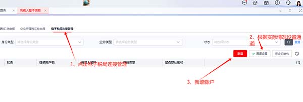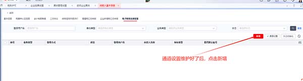 如果之前没有维护过组织信息,那就点击新增按钮,先把基本信息维护好,保存后,再去维护电子税局连接管理